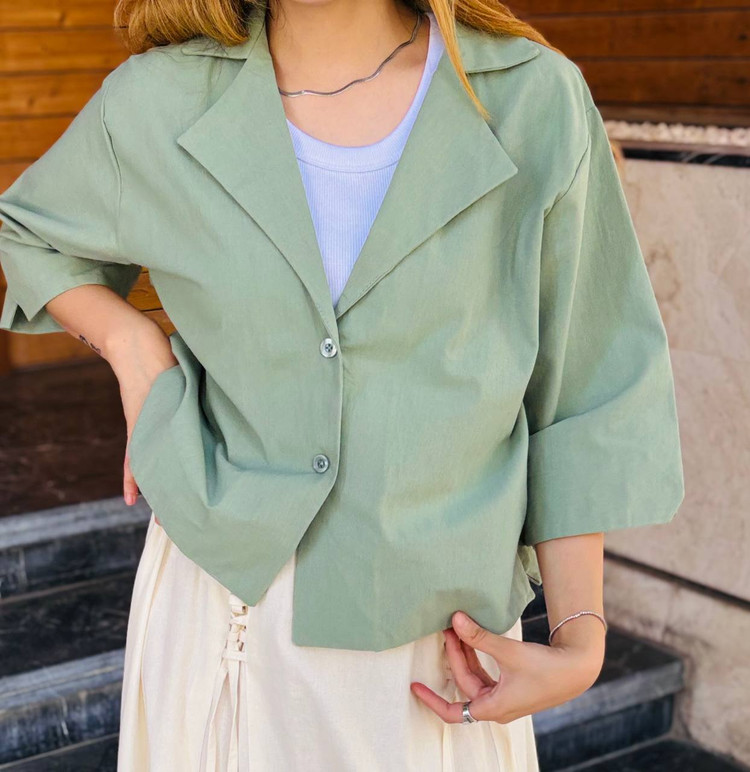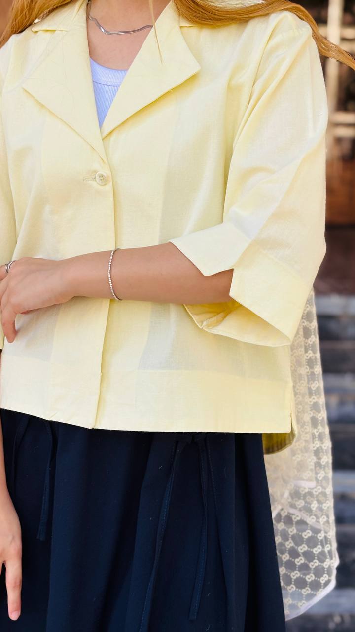 شومیز لینن باکسی یقه انگلیسی دخترانه